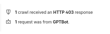 one crawler (GPTBot) has tried to access this website in the last 24 hours. And,